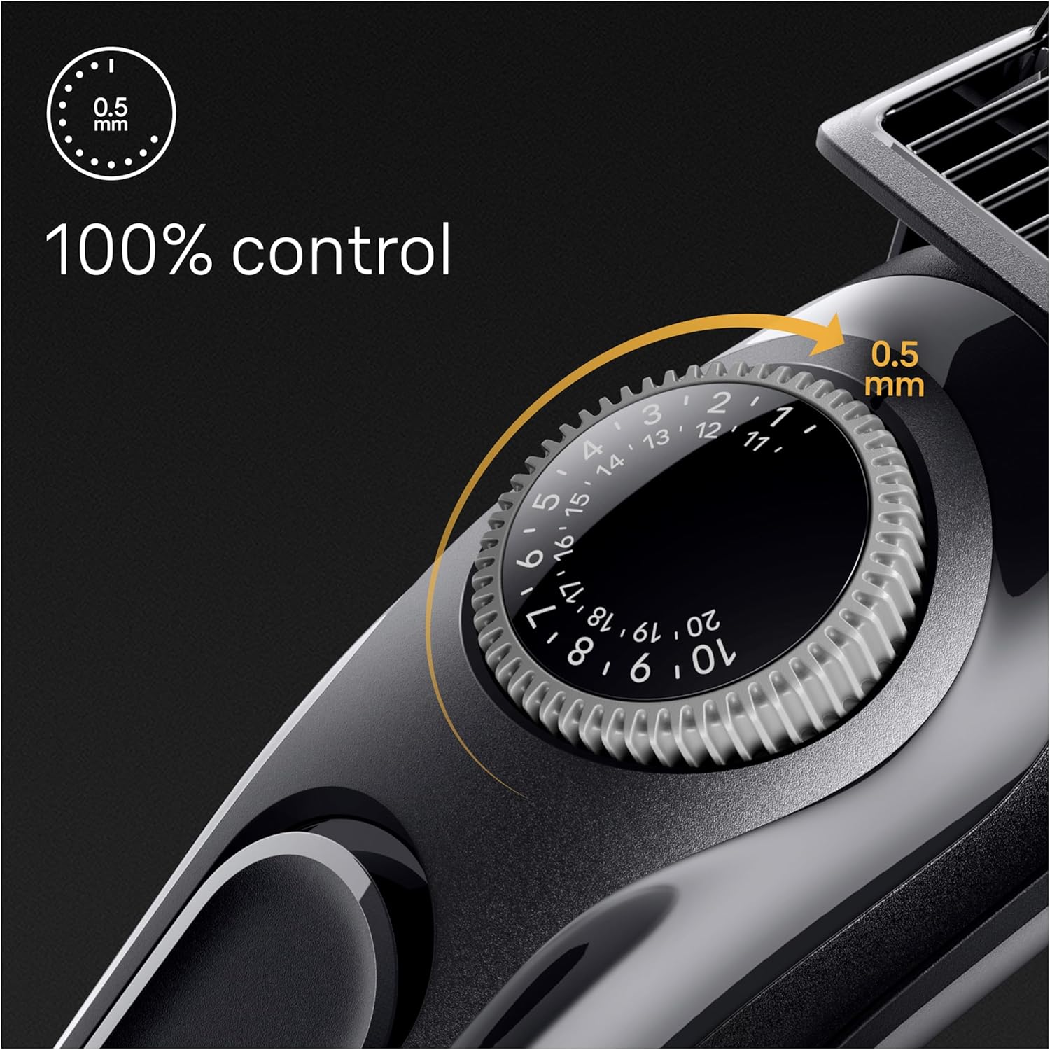 - 100% control at your fingertips: choose from 40 length settings in 0.5 mm precise steps with the precision wheel.